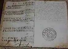 - Cité par Daniel Bernard, « Notes sur les fabriques de toiles de Locronan », Bulletin de la Société archéologique du Finistère, 1918 (en ligne).