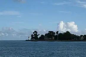 L'île Garo vue du port de Loctudy (au premier plan, la rivière de Pont-l'Abbé).