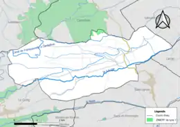 L'occupation des sols de la commune, telle qu'elle ressort de la base de données européenne d’occupation biophysique des sols Corine Land Cover (CLC), est marquée par l'importance des territoires agricoles (61,1 % en 2018), une proportion identique à celle de 1990 (61,3 %). La répartition détaillée en 2018 est la suivante : zones agricoles hétérogènes (44,9 %), forêts (38,8 %), terres arables (8,4 %), prairies (7,8 %)[23]. L'évolution de l’occupation des sols de la commune et de ses infrastructures peut être observée sur les différentes représentations cartographiques du territoire : la carte de Cassini (XVIIIe siècle), la carte d'état-major (1820-1866) et les cartes ou photos aériennes de l'IGN pour la période actuelle (1950 à aujourd'hui)[Carte 2].