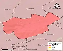 Les communes les plus proches[Note 1] sont[3] : Saint-Ignan (1,8 km), Lalouret-Laffiteau (3,0 km), Cardeilhac (3,5 km), Larcan (3,8 km), Saux-et-Pomarède (3,8 km), Sarremezan (4,5 km), Villeneuve-de-Rivière (5,3 km), Le Cuing (5,7 km).