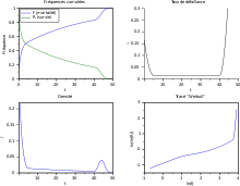 On définit la densité de défaillance comme le taux de variation de la fonction de mortalité F. C'est la « vitesse de mortalité » :