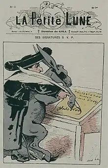Un prêtre fait signer à un âne une protestation contre les lois Ferry (caricature d'André Gill, 1878-1879).