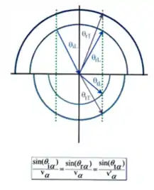 Les directions de propagation des ondes peuvent être déterminées graphiquement à partir des surfaces des lenteurs. En effet les lois de Snell-Descartes correspondent à la conservation de la projection sur l’interface des vecteurs lenteurs de toutes les ondes (incidente, réfléchie(s) et transmise(s)), comme illustré dans la figure ci-contre.
