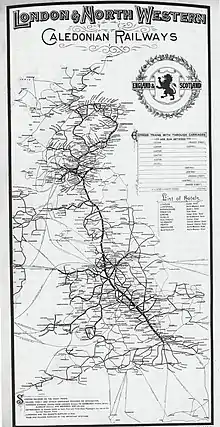 | Prédécesseur | Grand Junction Railway () Manchester and Birmingham Railway (en) () London and Birmingham Railway (en) () North Union Railway (en) South Staffordshire Railway (en) Stockport, Disley and Whaley Bridge Railway (en) Vale of Clwyd Railway (en) Denbigh, Ruthin and Corwen Railway (en) Anglesey Central Railway (en) Lancaster and Carlisle Railway (en) Cromford and High Peak Railway (en) Carnarvonshire Railway (en) Watford and Rickmansworth Railway (en) Lancashire and Yorkshire Railway (en) Cockermouth and Workington Railway (en) Sirhowy Railway (en) |