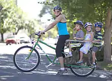 Il s'agit en général de vélos très robustes, équipés d'une béquille et d'une banquette pour asseoir plusieurs enfants[2]. La largeur de la caisse ne dépasse pas celle du guidon, ce qui permet de passer partout où passe un vélo traditionnel.