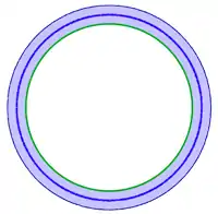 Si la valeur ε diminue, le volume du tube se rapproche du produit de la longueur de l'arc par le volume de la boule de dimension n – 1 et de rayon ε. Dans le cas du cercle de rayon r et en dimension 2, le tube est constitué de la zone de l'espace compris entre un cercle de rayon r + ε et un autre de même centre et de rayon r – ε. Son volume est exactement 2πr que multiplie 2ε. En dimension 3, le tube est un tore, une fois encore son volume est exactement le produit de 2πr par la surface d'un disque de rayon ε. Cette définition, si elle est un peu plus complexe à mettre en œuvre, se généralise aisément aux dimensions supérieures.