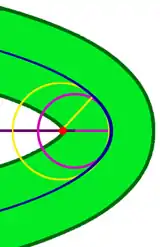 Définition d'un arc paramétré   Un arc paramétré de classe Cp est un couple (I, f) composée d'un intervalle I de ℝ et d'une fonction de I dans un espace euclidien, p fois dérivable, dont la dérivée pième est continue et dont la dérivée première ne s'annule jamais[10].