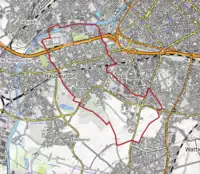 L'occupation des sols de la commune, telle qu'elle ressort de la base de données européenne d’occupation biophysique des sols Corine Land Cover (CLC), est marquée par l'importance des territoires artificialisés (80,4 % en 2018), en augmentation par rapport à 1990 (72,4 %). La répartition détaillée en 2018 est la suivante : zones urbanisées (49 %), zones industrielles ou commerciales et réseaux de communication (26 %), terres arables (18,6 %), espaces verts artificialisés, non agricoles (3,8 %), mines, décharges et chantiers (1,6 %), forêts (0,5 %), milieux à végétation arbustive et/ou herbacée (0,5 %)[15]. L'évolution de l’occupation des sols de la commune et de ses infrastructures peut être observée sur les différentes représentations cartographiques du territoire : la carte de Cassini (XVIIIe siècle), la carte d'état-major (1820-1866) et les cartes ou photos aériennes de l'IGN pour la période actuelle (1950 à aujourd'hui)[Carte 1].