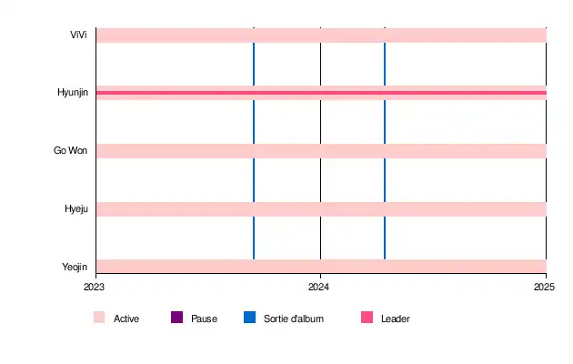 | Hyunjin | 현진 | Kim Hyun-jin | 김현진 | chanteuse principale, leader | ||