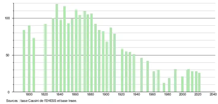 26 hab. (2021 en diminution de 7,14 % par rapport à 2015)