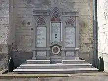 La tribune, la grotte de Notre-Dame-de-Lourdes et le chemin de croix ont été installés en 1892, à la demande de monsieur l’abbé Emile Occre. Au-dessus de la tribune, l’archange Gabriel fut offert en 1946 par la famille Ringot, en l’honneur du mariage de Joseph Ringot avec Marie-Louise Delabasserue.
