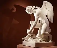 - L'Amour assis sur le bord de la mer rassemblant les colombes du char de Vénus, 1755, groupe en marbre[11] ;