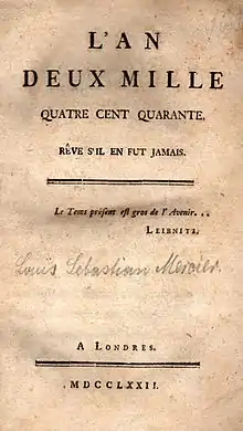 En 1770, la publication de l’uchronie l’An 2440 (Amsterdam, 1770, in-8°, 1786, 3 vol. in-8°), est la réalisation des utopies dont rêvait Mercier en matière d'éducation, de morale et de politique. On reconnut de la verve dans cet ouvrage d’anticipation, mais on le traita de folie ; et cependant la Révolution allait bientôt réaliser plusieurs des prophéties de Mercier. Dans cet ouvrage, Mercier défend les idées des Philosophes et déclare dans son avant-propos :