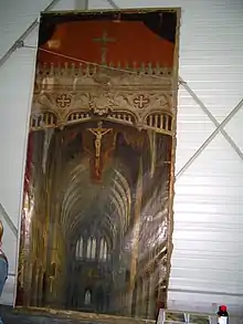 Panneau central du seul diorama subsistant de Louis Daguerre, dans l'atelier de restauration de Bry-sur-Marne, septembre 2007.