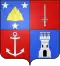 Ecartelé : au 1er, d'azur à un rocher de six coupeaux d'or accompagné de trois étoiles d'argent, 2 et 1 ; au 2e, des barons militaires ; au 3e, de gueules à une ancre a jas d'argent ; au 4e, d'azur à une tour donjonnée de trois tourelles d'argent, ouverte, ajourée et maçonnée de sable. |