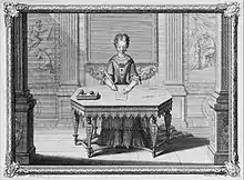 Illustration des Nouveaux principes d'écriture italienne : gravure de Tardieu sur un dessin de Bertin (Paris BNF).
