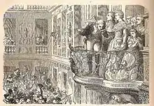 Le couple se montre volontiers en public, notamment en prodiguant quelques instants de réconfort auprès des plus pauvres. L'historien Pierre Lafue écrit que « populaires sans l'avoir cherché, les deux époux frémissaient de joie en écoutant les acclamations monter vers eux, dès qu'ils paraissaient en public »[13]. Leur première visite officielle à Paris et au peuple parisien se déroule le . Lors de cette journée, le couple a reçu un accueil des plus chaleureux et la foule nombreuse n'a cessé de les acclamer. Au programme de cette longue journée, Louis-Auguste et son épouse ont été reçus à Notre-Dame, sont montés prier devant la châsse de Sainte Geneviève dans l'abbaye du même nom avant de finir par une promenade dans les Tuileries, ouvertes à tous pour l'occasion[a 12]. L'ambassadeur de Mercy résume la journée en affirmant que « cette entrée est d'une grande conséquence pour fixer l'opinion publique »[40]. Le couple prend goût à ces accueils triomphaux et n'hésite pas, dans les semaines suivantes, à sortir à l'Opéra, à la Comédie-Française ou encore à la Comédie-Italienne.