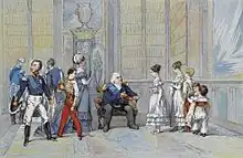 D'autres n'oublient pas que c'est un ancien émigré, chassé par la Révolution qui a exterminé une partie de sa famille, et ramené sur le trône de France avec l'aide d'étrangers.