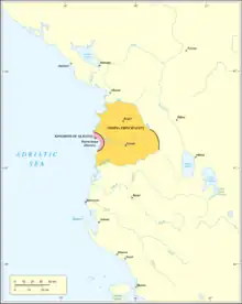 Les territoires albanais sont menacés depuis un certain temps par Karl Thopia, lui-même soutenu par Venise. La ville même de Durazzo tombe aux mains de Thopia en . La reine Jeanne Ire de Naples se trouvant alors en lutte contre les prétentions de Louis Ier d'Anjou, Louis de Navarre voit ses espérances de reconquête de Durazzo limitées.