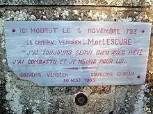 Louis-Marie de Salgues, marquis de Lescure, né le [1] à Paris en l'hôtel de Montaigu rue des Fossoyeurs (actuellement rue Servandoni) et mort le à La Pellerine, est l'un des chefs de l'armée catholique et royale au cours de la guerre de Vendée, pendant la Révolution française. Il est surnommé le « saint du Poitou ».