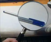 - les loupes à manche, les plus courantes, qui se tiennent à la main, et permettent de grossir un détail difficile à distinguer à l'œil nu, ou à lire un texte écrit trop petit.