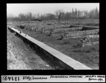 De nouvelles fouilles sont entreprises dans les années 1960, pendant la construction de l'autoroute A1 sous laquelle se situe une grosse partie du site, puis lors de la construction de l'exposition nationale suisse de 1964. Les investigations réalisées entre 1972 à 1976 mettent au jour le forum à l'emplacement de la promenade archéologique actuelle[6]. Entre 1998 et 2001, c'est la fouille de la rive est du Flon qui permet la découverte d'un théâtre romain et d'un quartier d'habitations[7]. La zone qui englobe les structures à vocation domestique se développe du delta du Flon jusqu'à celui de la Chamberonne[7]. En 2012, les prospections préventives entreprises sur le site du futur stade permettent la découverte de plusieurs sépultures appartenant probablement à une nécropole[7].