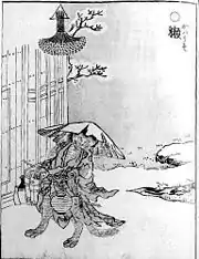 Un dessin de Toriyama Sekien (1712 – 1788) montre une loutre marchant sur deux pieds, vêtue en marchand de saké avec un seau à la main, ce qui peut illustrer l'expression familière « saké no sakana » (« poisson pour le saké ») pour désigner un alcool accompagné d'amuse-gueules[18].