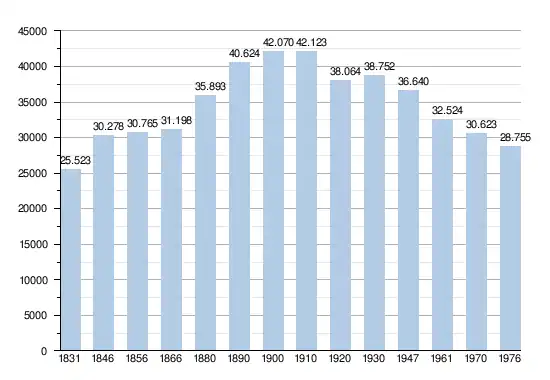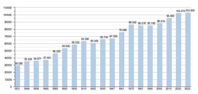 La ville connaît une croissance démographique régulière tout au long des années 2000-2020 avec un peu plus de 100 000 habitants en 2020.