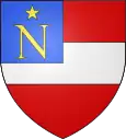 Blasonnement : De gueules à la fasce d'argent, au franc quartier des bonnes villes de seconde classe de l'Empire, qui est d'azur à la lettre N d'or surmontée d'une étoile du même.