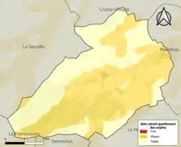 Le retrait-gonflement des sols argileux est susceptible d'engendrer des dommages importants aux bâtiments en cas d’alternance de périodes de sécheresse et de pluie. 57 % de la superficie communale est en aléa moyen ou fort (52,8 % au niveau départemental et 48,5 % au niveau national). Sur les 110 bâtiments dénombrés sur la commune en 2019, 51 sont en aléa moyen ou fort, soit 46 %, à comparer aux 70 % au niveau départemental et 54 % au niveau national. Une cartographie de l'exposition du territoire national au retrait gonflement des sols argileux est disponible sur le site du BRGM[16],[Carte 2].