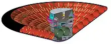 - Bouclier thermique gonflable offrant une surface de freinage beaucoup plus importante dans la phase haute de la descente[N 2],[3].