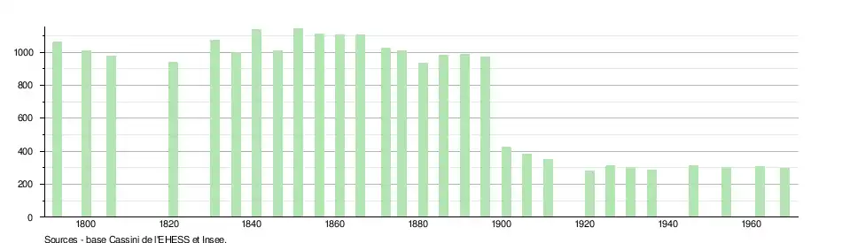 Les données ci-dessous comportent le nombre d'habitants pour la commune. Les habitants de Villieu sont compris dans les données jusqu'en 1896.