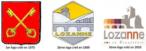 Vers 1975, un blason « de gueules a deux clés d'or en sautoir » est créé. Il ressemblait beaucoup à celui de l’abbaye d’Ainay afin de rappeler que dans les premiers temps, Lozanne faisait partie de leurs possessions. Il servit d'emblème à la commune jusqu'en 1989, date à laquelle il est remplacé par un logotype créé par une graphiste professionnelle, Pascale Joly.