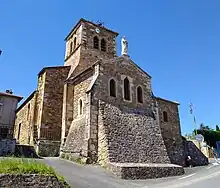 - L'église romane, avec son clocher du XIIIe siècle, qui serait l'agrandissement d'une chapelle du VIe siècle, est placée sous le vocable de saint Maurice et sainte Marguerite. En 2010, une restauration révèle que c'est saint Georges, terrassant le dragon, qui est représenté sur une peinture de 1480 au-dessus du portail, et non saint Maurice comme on le croyait jusque-là[29]. L'intérieur abrite une piscine liturgique, utilisée dans l'ancien temps pour les baptêmes par immersion.