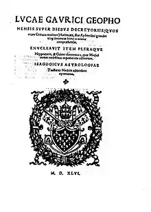 Luca Gaurico (en latin Lucas Gauricus), longtemps connu en français sous le nom de Luc Gauric, (Giffoni[1],[2], dans l'ancien royaume de Naples, – Rome, ) fut un astrologue et un évêque italien.