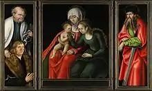- Panneau principal : Martyre de sainte Catherine 127 × 140 cm, Gemäldegalerie Alte Meister, Dresde
