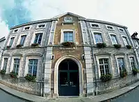 - D'après des plans de l’architecte Adrien Guillemin pour abriter l’administration municipale, l’école communale de garçons (ou « maison d’école »), le logement de l’instituteur-secrétaire de mairie et le prétoire de la justice de paix du canton. « C’est là la conséquence d’une décision prise en séance du conseil municipal du 11 novembre 1866, qui déclarait : "La maison commune […] est dans un état grave de délabrement et la reconstruction en devient urgente. Il est donc décidé qu’un architecte en étudiera la reconstruction, à savoir s’il est possible d’édifier sur l’emplacement qu’elle occupe un bâtiment capable de recevoir ces divers services et d’en faire le plan et le devis estimatif, puis de soumettre le tout au conseil des bâtiments civils et solliciter du Gouvernement son concours pour cette reconstruction." » Source : Frédéric Lafarge, Un édifice de style néo-Renaissance : l'hôtel de ville de Lugny, bulletin municipal de Lugny pour l'année 2021, page 25.