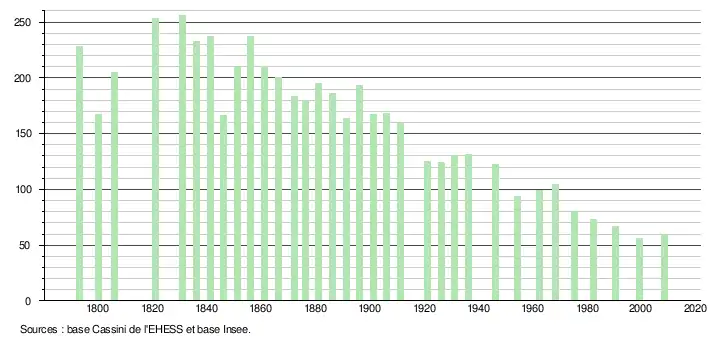 | L'évolution du nombre d'habitants est connue à travers les recensements de la population effectués dans la commune depuis 1793. À partir du , les populations légales des communes sont publiées annuellement dans le cadre d'un recensement qui repose désormais sur une collecte d'information annuelle, concernant successivement tous les territoires communaux au cours d'une période de cinq ans.
