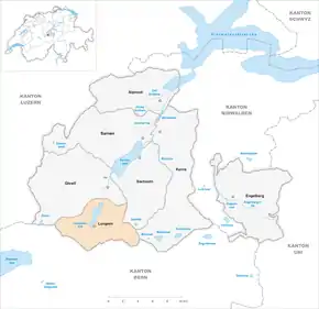 Le territoire de Lungern s'étend sur 46,51 km2[2]. Lors du relevé de 2013-2018, les surfaces d'habitations et d'infrastructures représentaient 3,8 % de sa superficie, les surfaces agricoles 39,5 %, les surfaces boisées 42,2 % et les surfaces improductives 14,5 %[3]. Lungern est limitrophe de Kerns, Giswil et Sachseln.