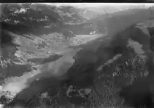 Le lac de Lungern est en usage pour la production électrique (barrage reservoir). Le col du Brünig est situé vers le sud.