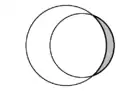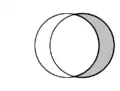 | En géométrie plane, la forme en croissant formée par deux disques s'intersectant est appelée "lunule". Au sein de chaque schéma, deux lunules sont présentes et l’une est grisée. | ||