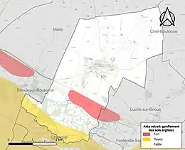 Les mouvements de terrains susceptibles de se produire sur la commune sont des tassements différentiels[17]. Le retrait-gonflement des sols argileux est susceptible d'engendrer des dommages importants aux bâtiments en cas d’alternance de périodes de sécheresse et de pluie[18]. 13,7 % de la superficie communale est en aléa moyen ou fort (54,9 % au niveau départemental et 48,5 % au niveau national)[Carte 2]. Depuis le , en application de la loi ELAN, différentes contraintes s'imposent aux vendeurs, maîtres d'ouvrages ou constructeurs de biens situés dans une zone classée en aléa moyen ou fort[Note 2],[19].