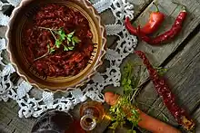 - Ajvar : préparation similaire, mais de couleur plus orange et faite principalement de poivrons rouges, de piment et d'ail (parfois avec des aubergines)