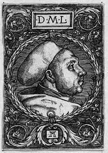 Martin Luther [maʁtɛ̃ lytɛʁ][1] (en allemand : [ˈmaʁtiːn ˈlʊtɐ][2] ), né le à Eisleben, en Saxe[3] et mort le dans la même ville, est un prêtre augustin[4], théologien et professeur d'université allemand. Initiateur du protestantisme[5],[6],[7],[8] et réformateur de l'Église, ses idées exercèrent une grande influence sur la Réforme protestante, qui changea le cours de la civilisation occidentale[9].