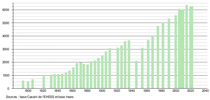 - Population municipale légale en vigueur au 1er janvier 2024, millésimée 2021, définie dans les limites territoriales en vigueur au 1er janvier 2023, date de référence statistique : 1er janvier 2021.