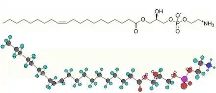 Une lysophosphatidyléthanolamine (LPE) est un phospholipide issu de l'hydrolyse, généralement par une phospholipase A2, d'un résidu d'acide gras en position 2 sur le glycérol d'une phosphatidyléthanolamine :