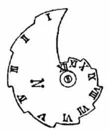 En horlogerie, la denture des roues peut être de différents types ; sur les engrenages des horloges d'édifices, le profil est passé d'une forme triangulaire à d'autres plus élaborées, déterminées par tâtonnement puis, aux XVIIe et XVIIIe siècles, à des profils plus scientifiques : le profil épicycloïdal et le profil en développante de cercle permettant une transmission par roulement, donc sans glissement et théoriquement sans frottement[14].