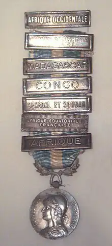 | Médaille coloniale (ici celle avec agrafe « Maroc »). |