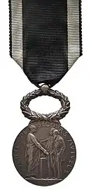 • Le ruban de la médaille d'argent sera marqué par un liséré d'argent de chaque côté de la partie bleue à l'intérieur.
