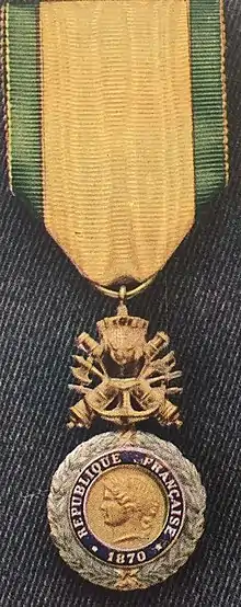 La médaille militaire est une décoration militaire française, instituée le par Louis-Napoléon Bonaparte[1] destinée aux militaires du rang, aux sous-officiers, et à titre exceptionnel, aux officiers généraux et maréchaux de France.